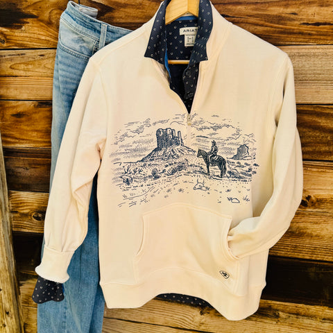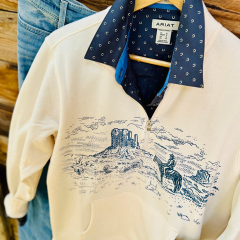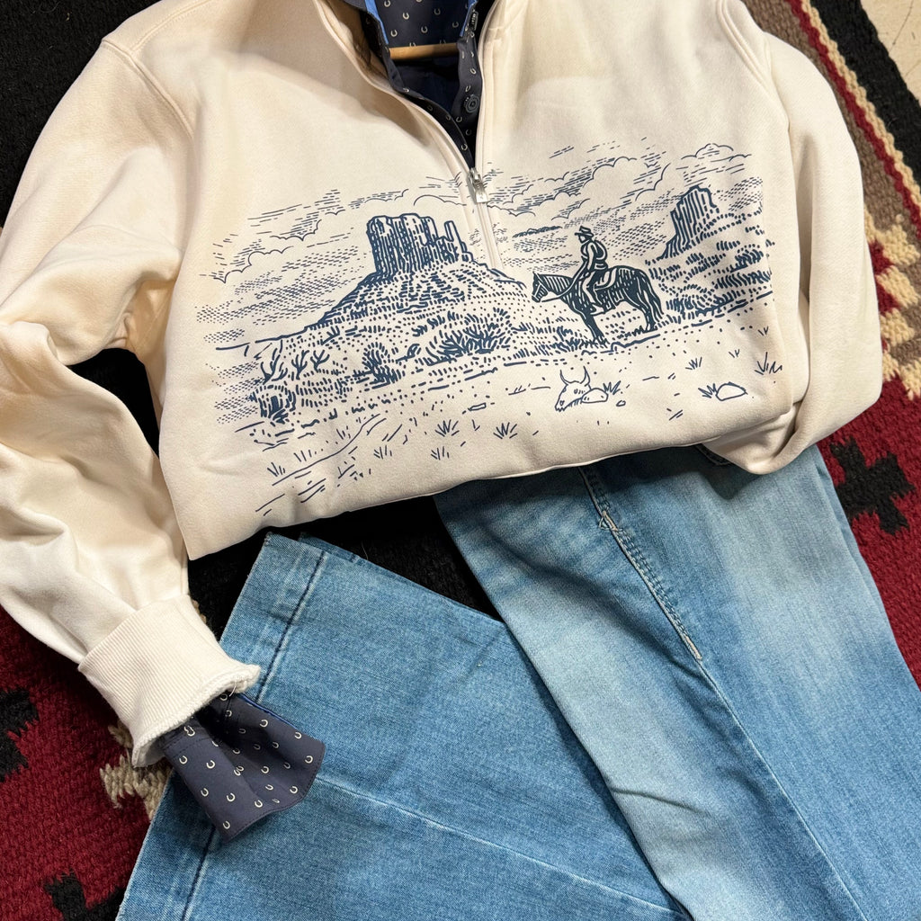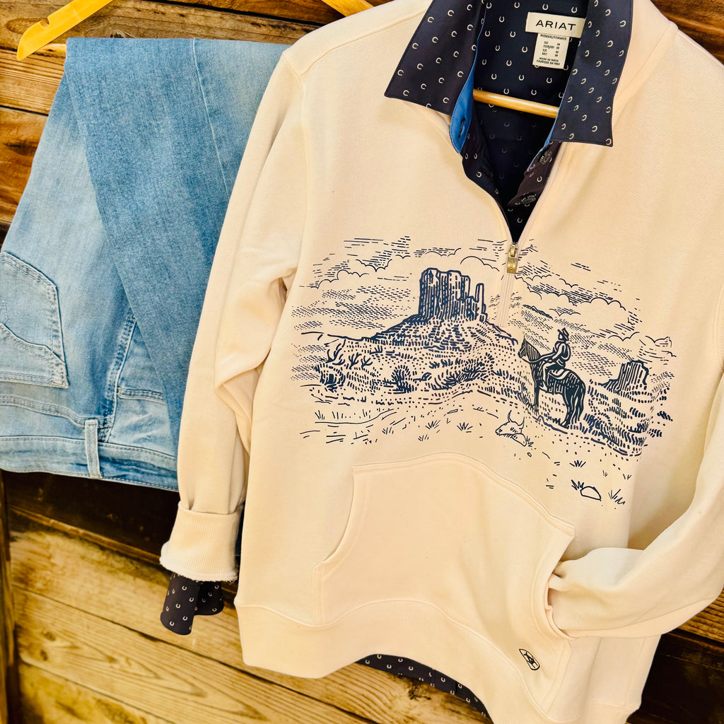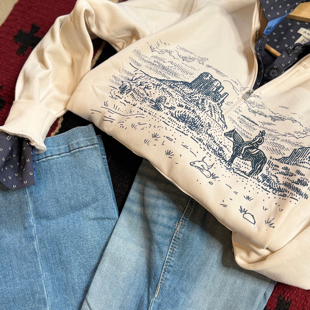 Whether you’re running out for a quick morning grocery trip or winding down by the campfire making s’mores, this comfy-cute sweatshirt is the perfect cozy layer. The zippered collar adds extra warmth and gives you an easy, adjustable fit, while the Western desert landscape print brings the style and makes it anything but basic.