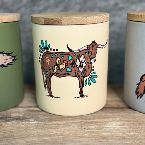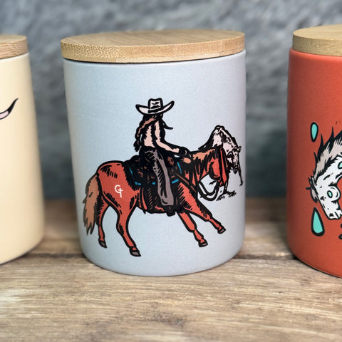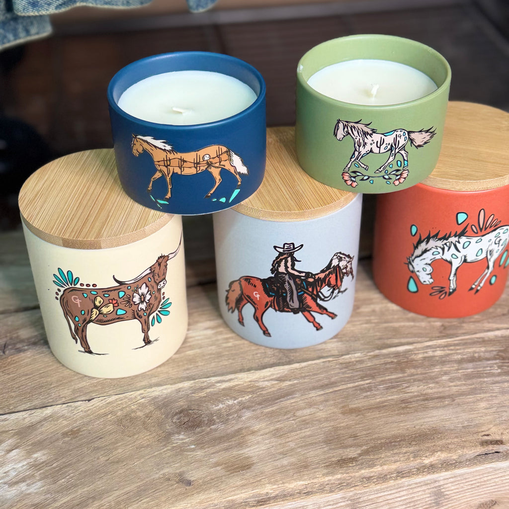 Bring the warmth of the ranch into your home with our Cowboy Candles, handcrafted by artist Lauren Chaney. Made right here in the USA, each candle is thoughtfully poured using all-natural soy wax, cotton wicks, and essential oils for a clean, long-lasting burn.