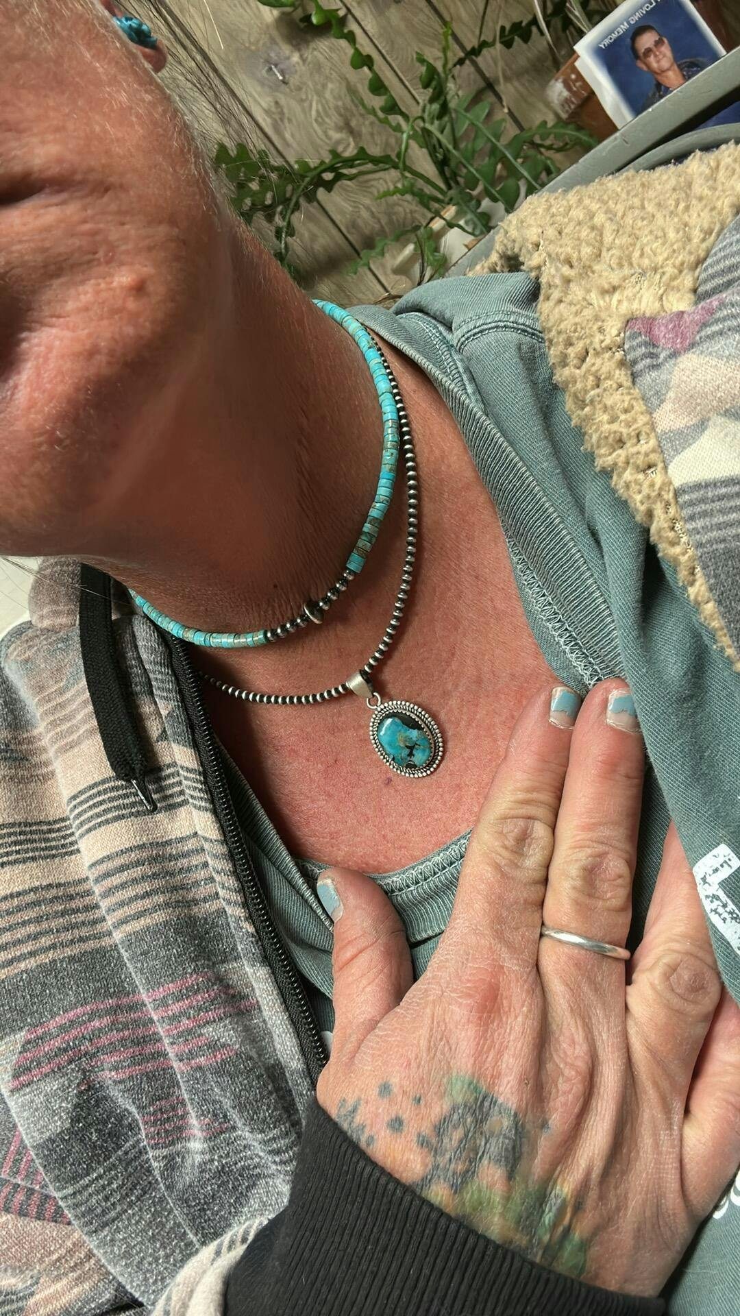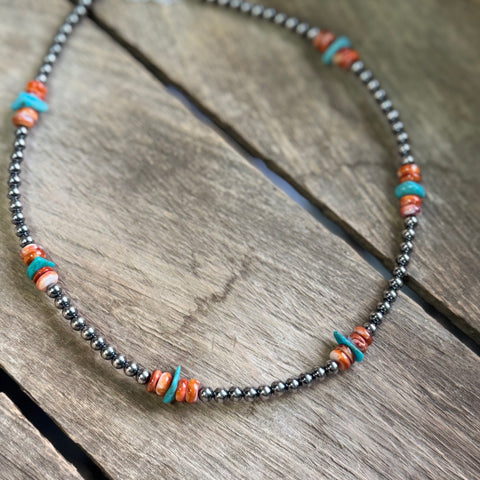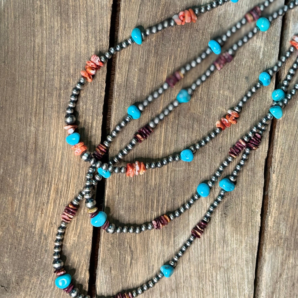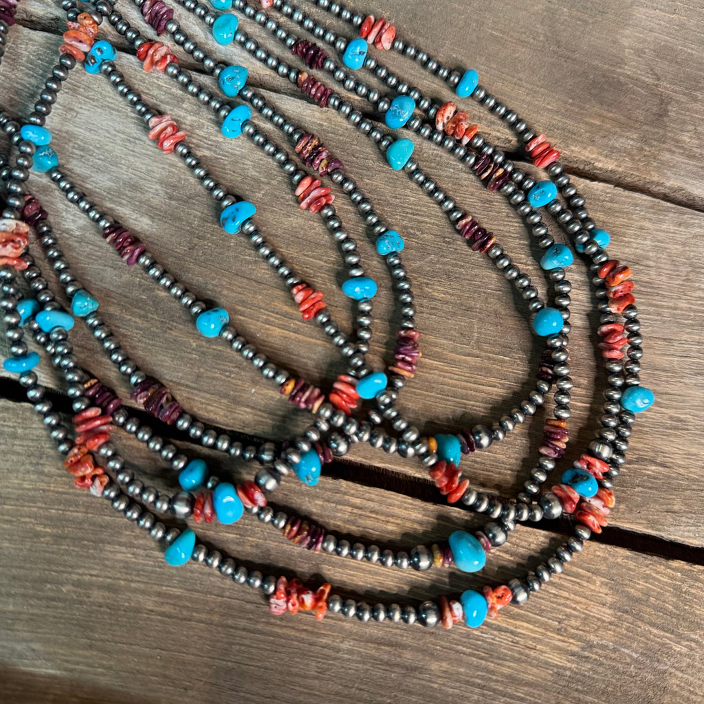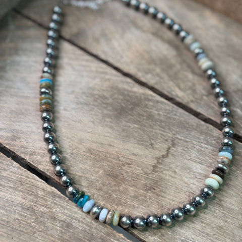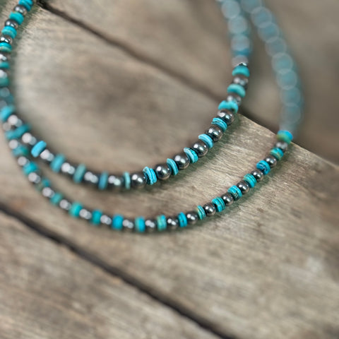 This piece features solid sterling silver beads and authentic American-mined turquoise, all hand-strung in America. Made with real stones and traditional craftsmanship, it reflects the kind of quality and authenticity that never goes out of style. A true everyday essential for collectors and turquoise lovers alike.