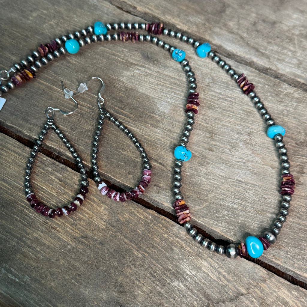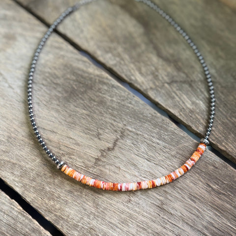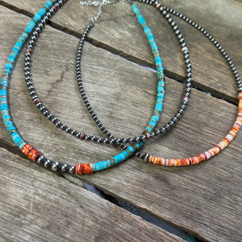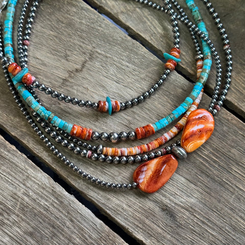 Paired with sterling silver and genuine turquoise, spiny oyster adds bold color and organic texture to a piece. Each bead is cut and shaped from real shell, making natural variations part of its beauty. No two strands are ever exactly alike.