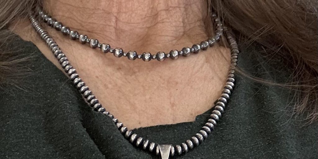 Graduated Navajos - Mainly 4-8 mm and offered in 14- 80" wraps inches long 3 inch extender chain.