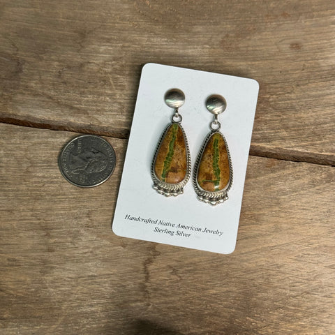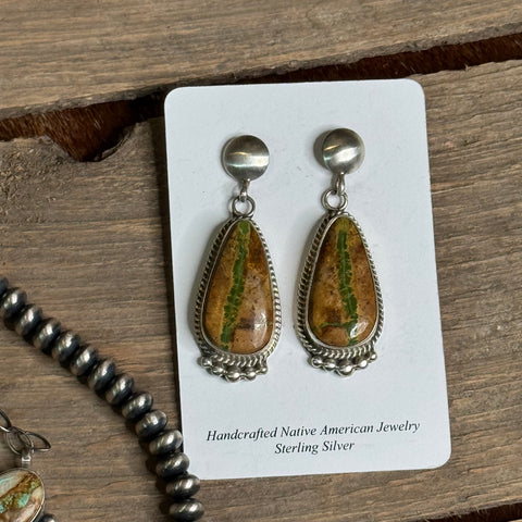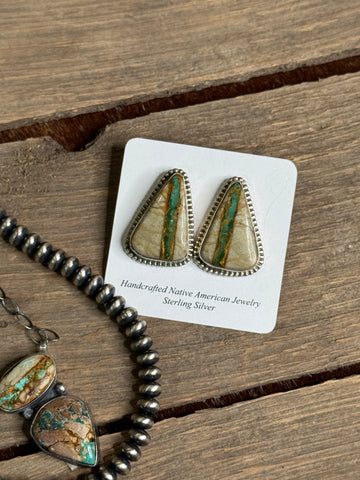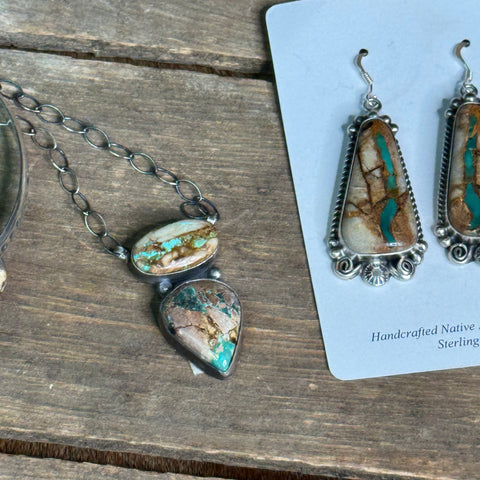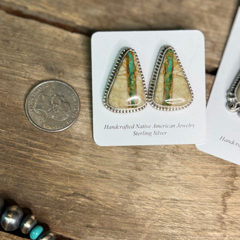 These Royston Ribbon Earrings showcase the graceful movement and timeless beauty that Pearlene Spence is known for. Each pair features genuine Royston turquoise set in sterling silver, with softly flowing “ribbon” details that add dimension without overwhelming the stone.