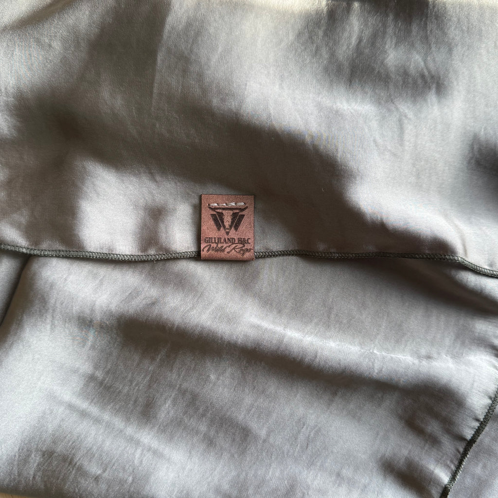 Lightweight silk blend wild rag that will be sure to keep the cold wind off your neck or your hair in control!  Look and feel of silk!