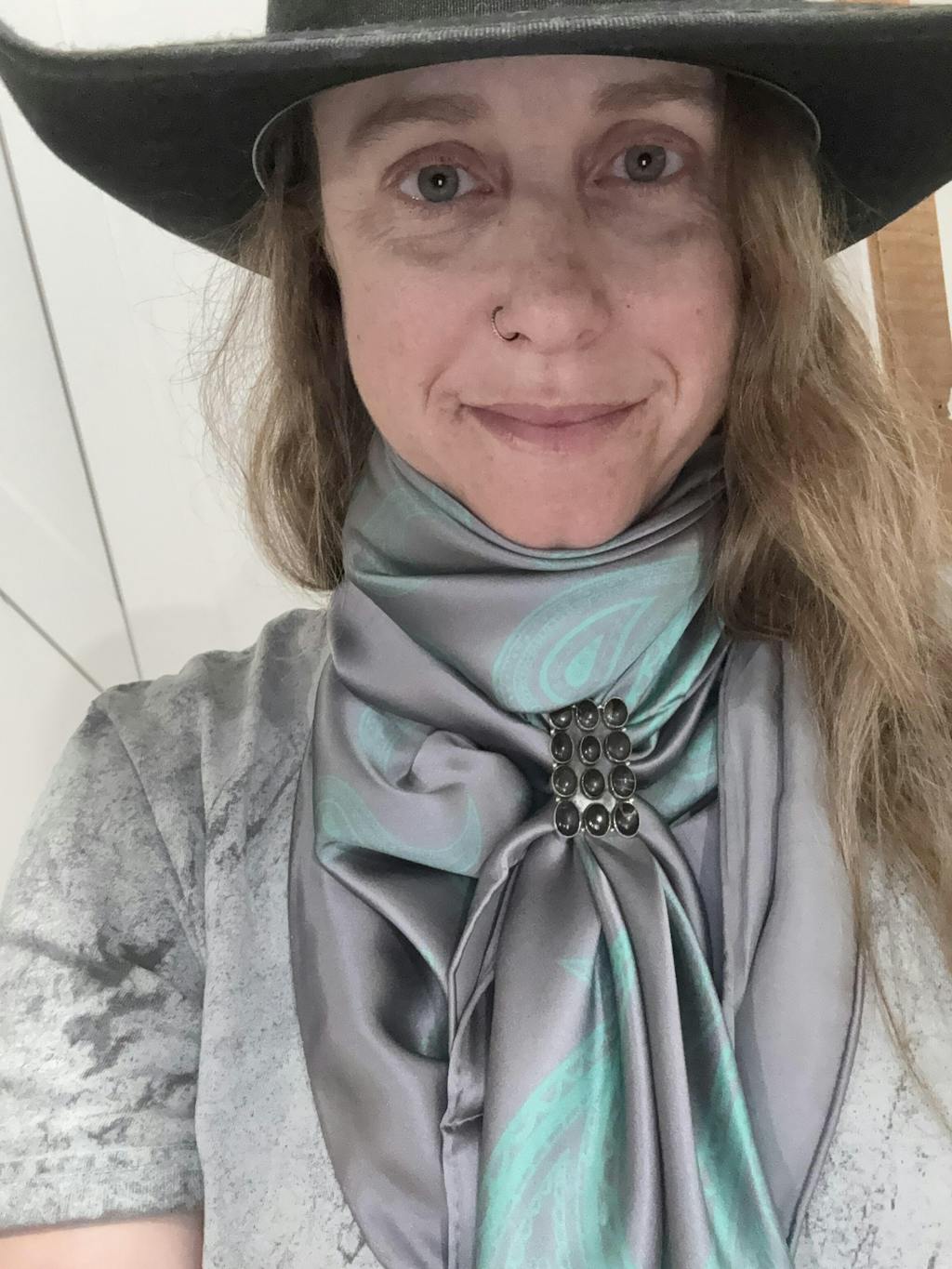 A timeless staple with a modern twist—this wild rag is a nod to traditional cowboy scarves - still tough enough to keep you warm but stylist for dress as well.  Wear it in your hair, around your neck, or tied to your bag for that perfect touch of western elegance. Made from high-quality 100% silk satin with hand-rolled edges for a refined finish.