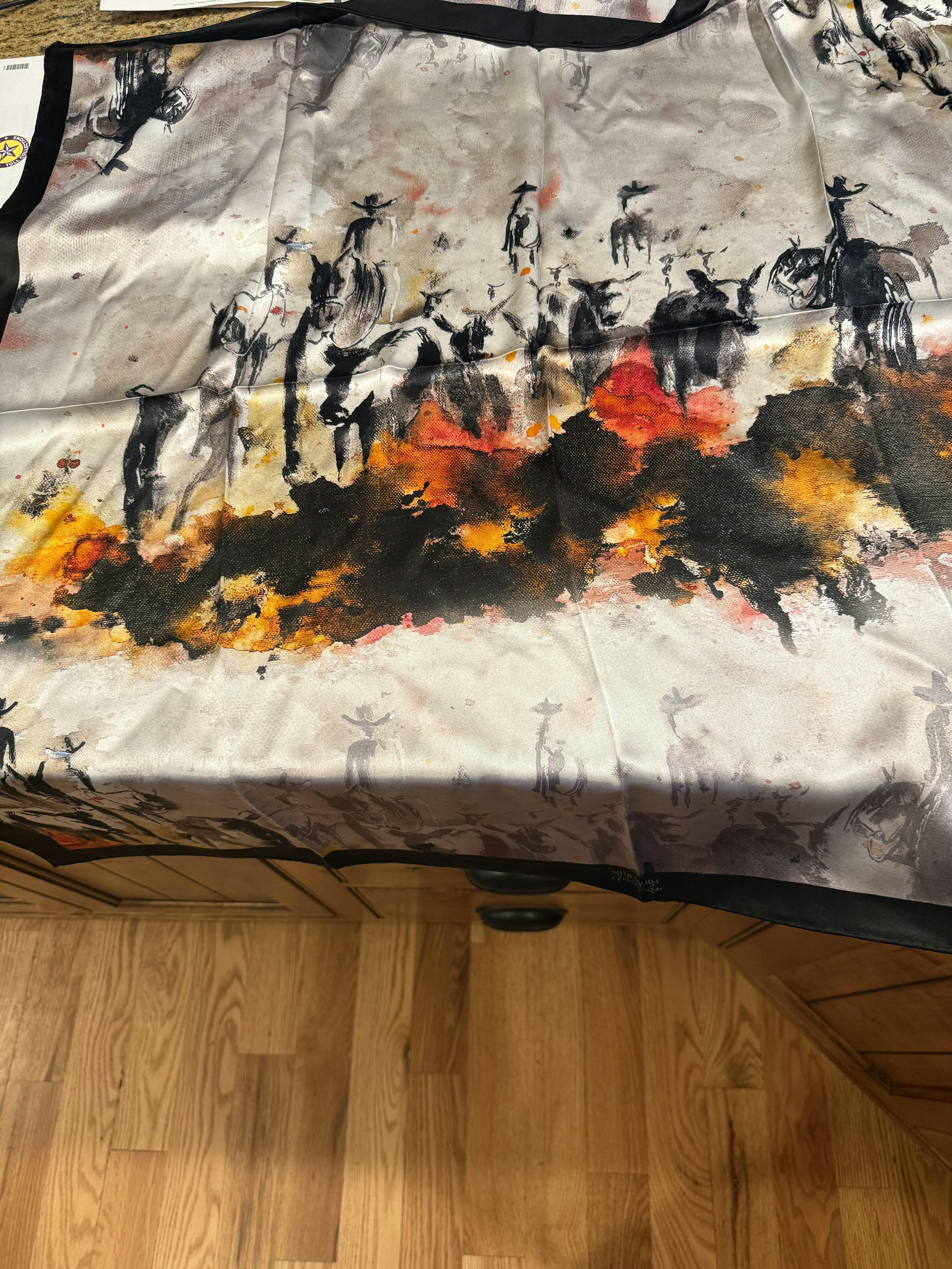 Beautiful. Tara' artwork the the perfect thing to put on a wild rag.I love both of the rags that I bought.