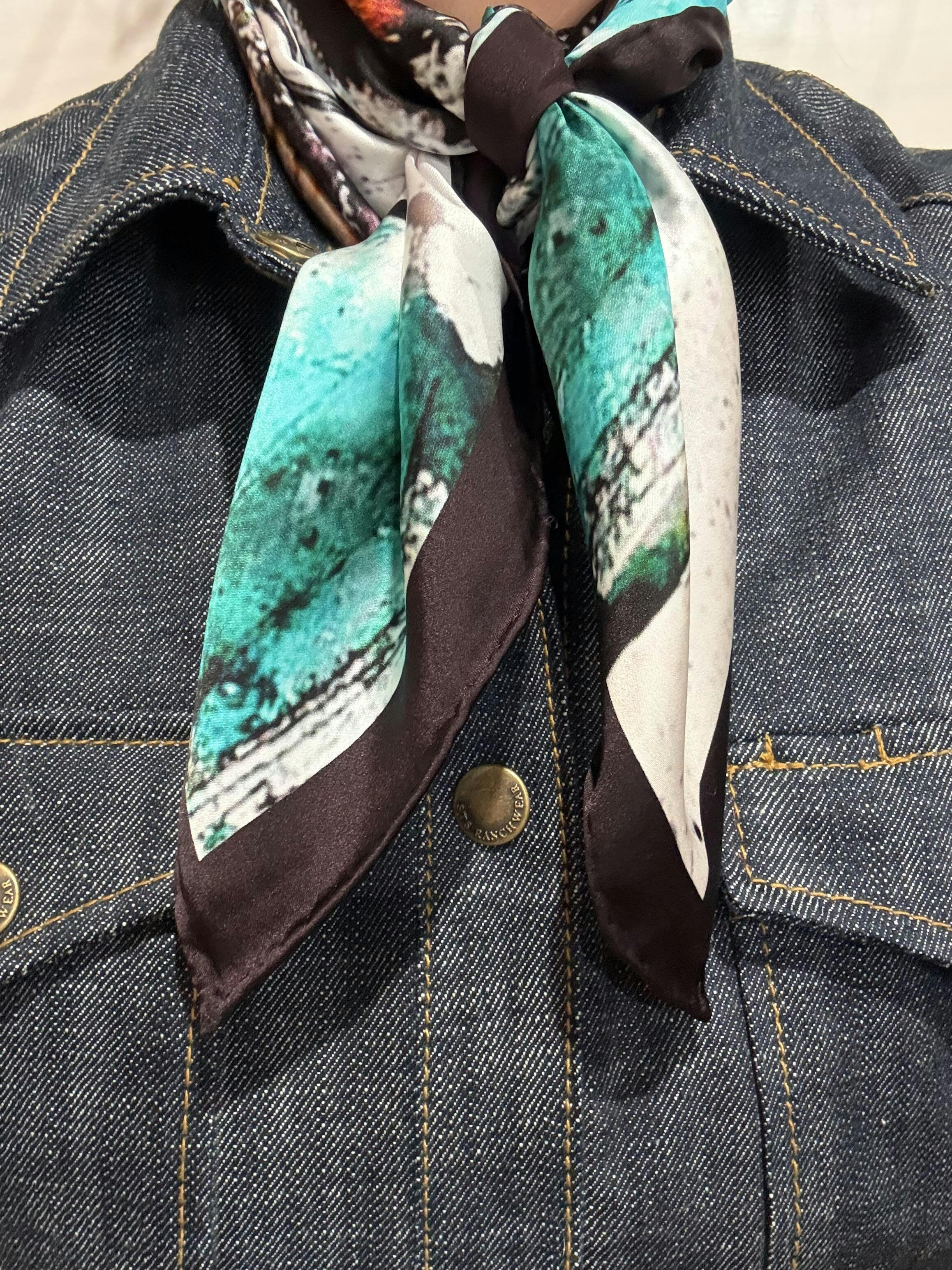 I absolutely love this Silk Call Me Blue 42" wild rag! The quality of the silk is top-tier—soft, smooth, and truly luxurious. You can tell right away it’s premium silk. The colors are incredibly vibrant and rich, even more beautiful in person.