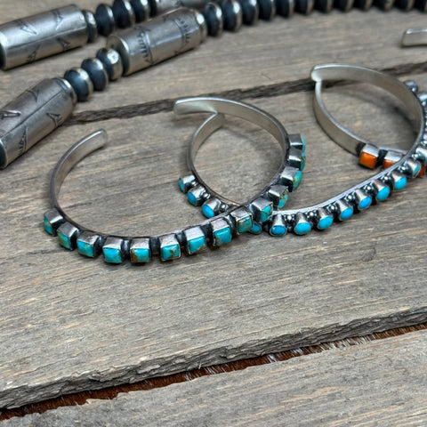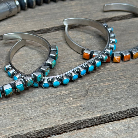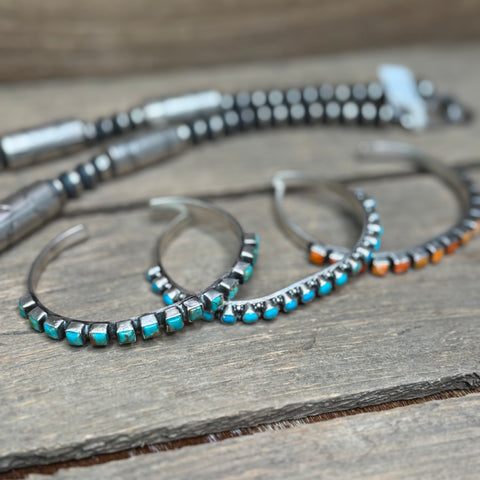 Looking for a great stacker or just a simple piece of Navajo jewelry to wear alone? These 7"multi stone cuffs by the artist Sheila Tso are perfect!
